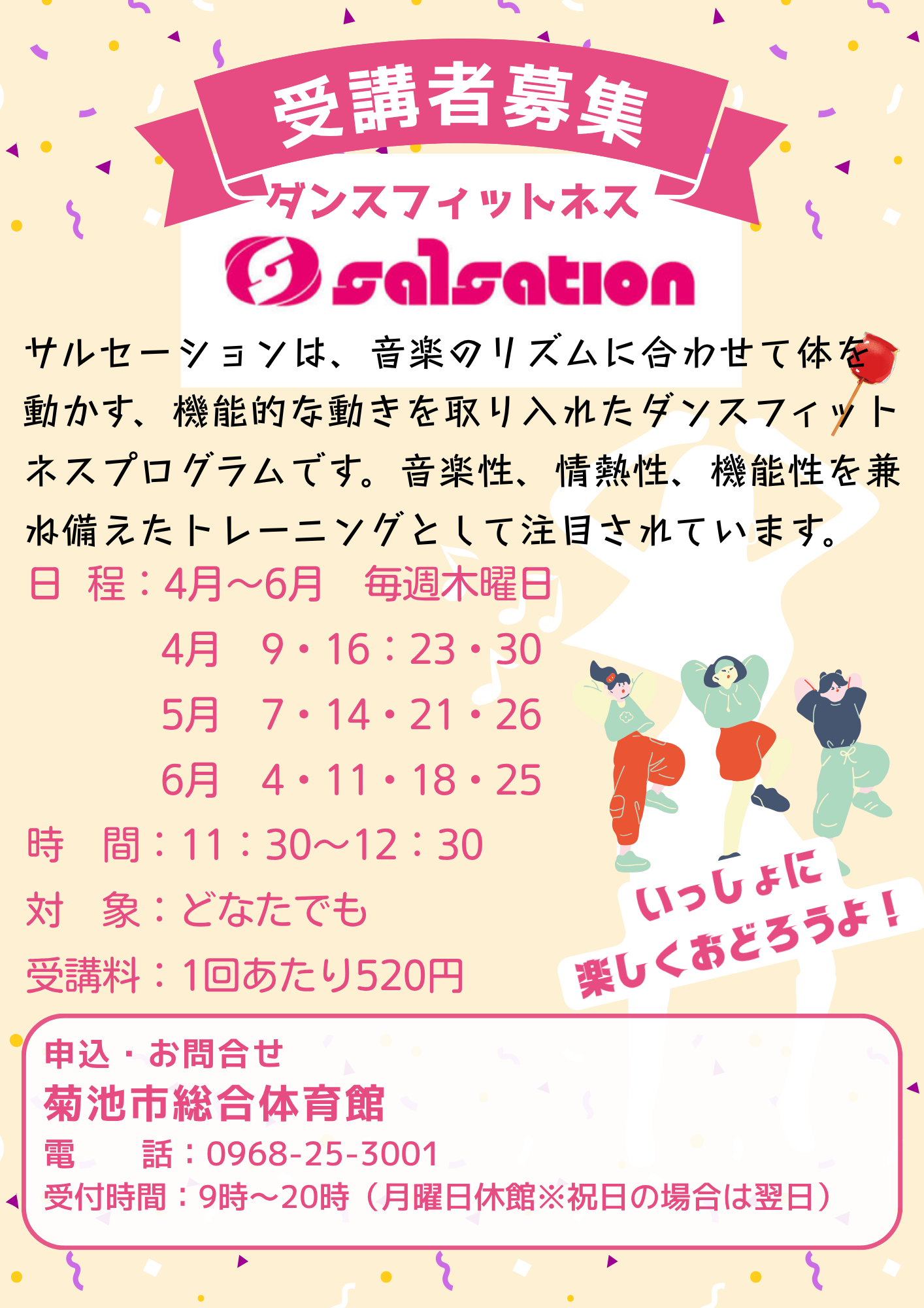 サルセーションは、音楽のリズムに合わせて体を動かす、昨日的な動きを取り入れたダンスフィットネスプログラムです。