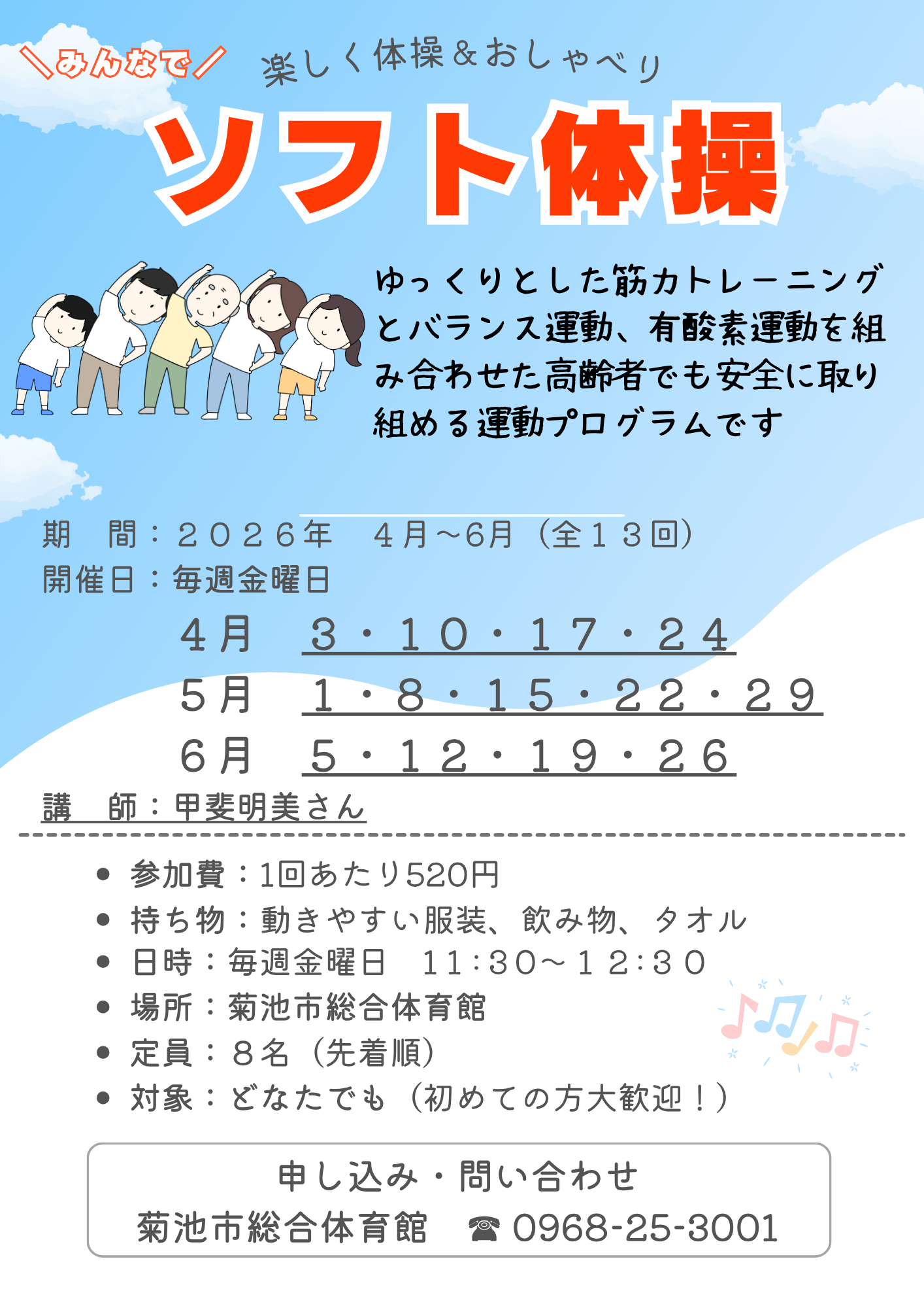 ●簡単な運動を行うため、室内シューズ、タオルと飲み物をご持参ください。